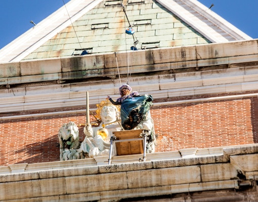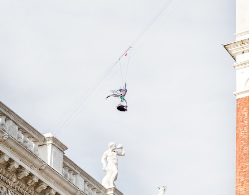 Gå ikke glip af den spændende Flight of the Eagle den 15. februar 2026 fra kl. 12 til 13 på Markuspladsen. Denne dristige nedstigning fra Campanile er et uundgåeligt skue, som holder karnevalets energi oppe.