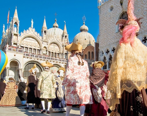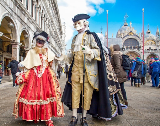 Du kan bære maske og kostume under hele Varigheden af Venedigs karneval. Faktisk klæder mange mennesker sig ud til hele begivenheden, især omkring Markuspladsen og de store baller. Bare sørg for at tjekke dresscoden for specifikke begivenheder.