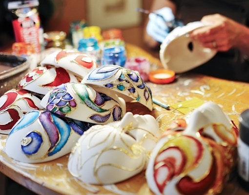 Har du brug for en pause fra menneskemængden? Tag til et af de venetianske maske- og kostumeværksteder, der ligger spredt rundt omkring i byen. Her kan du se kunsthåndværkere skabe deres fantastiske kunstværker eller endda deltage i et maskekursus for at skabe dit eget unikke mesterværk.